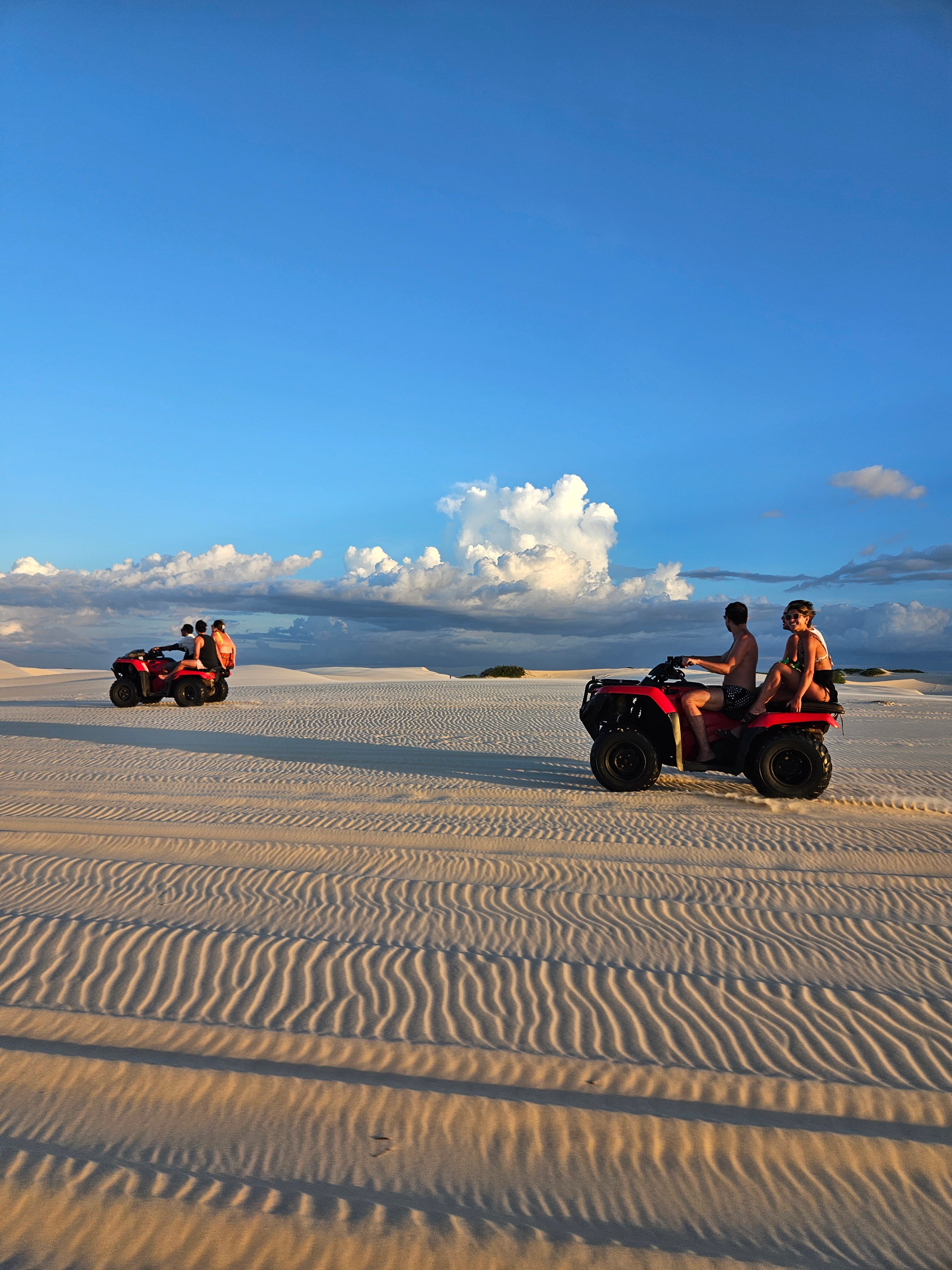 Além dessas comodidades, oferecemos aluguel de quadriciclo, fotógrafo, aulas de kite, massagem, serviço de chef e barista, e também disponibilizamos na casa uma seleção de produtos de empório como queijos, aperitivos e vinhos, pois sabemos a dificuldade de encontrá-los na região.