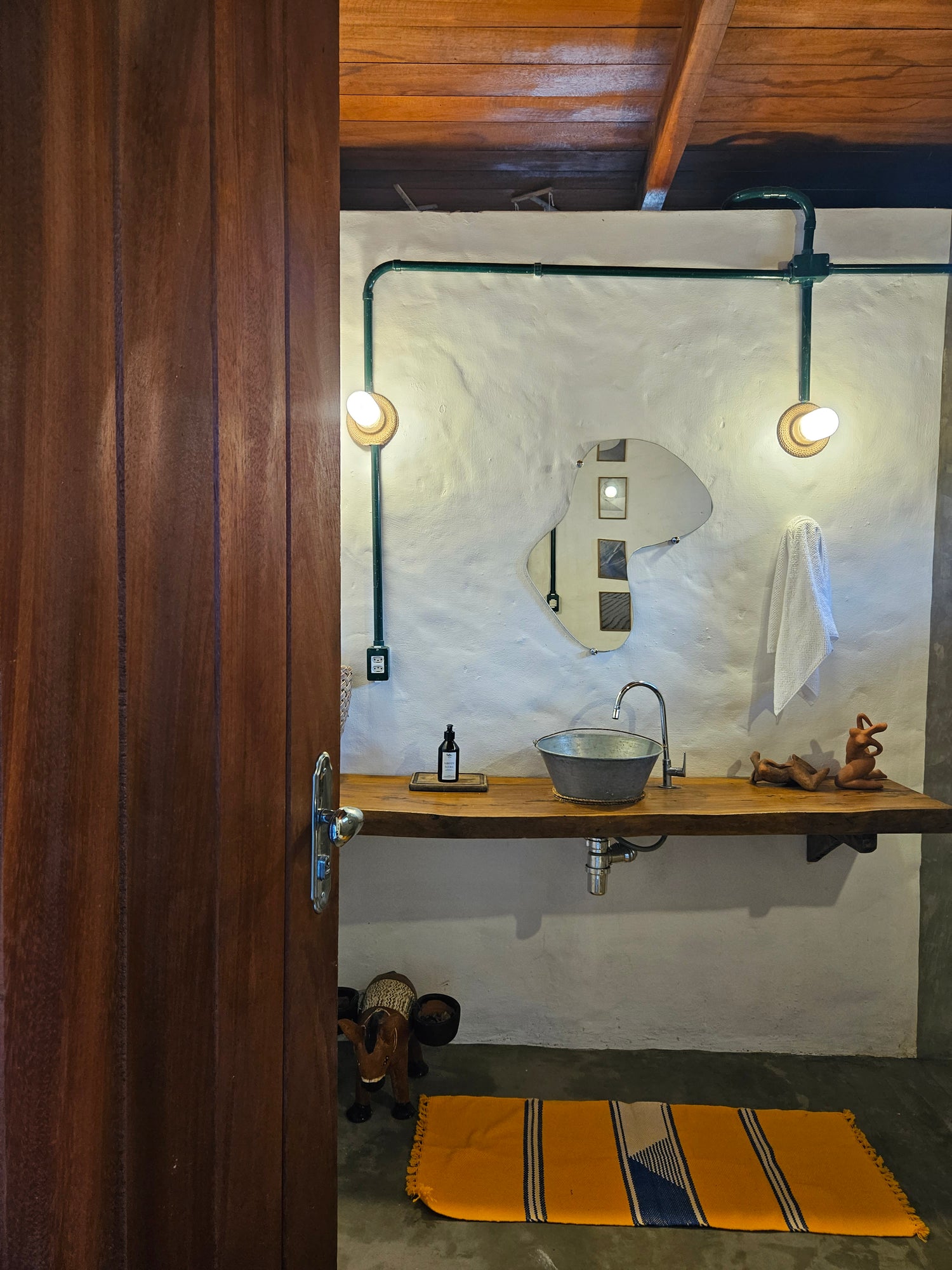 O banheiro principal da casa, que pode ser compartilhado para quem está no mezanino e no ateliê.